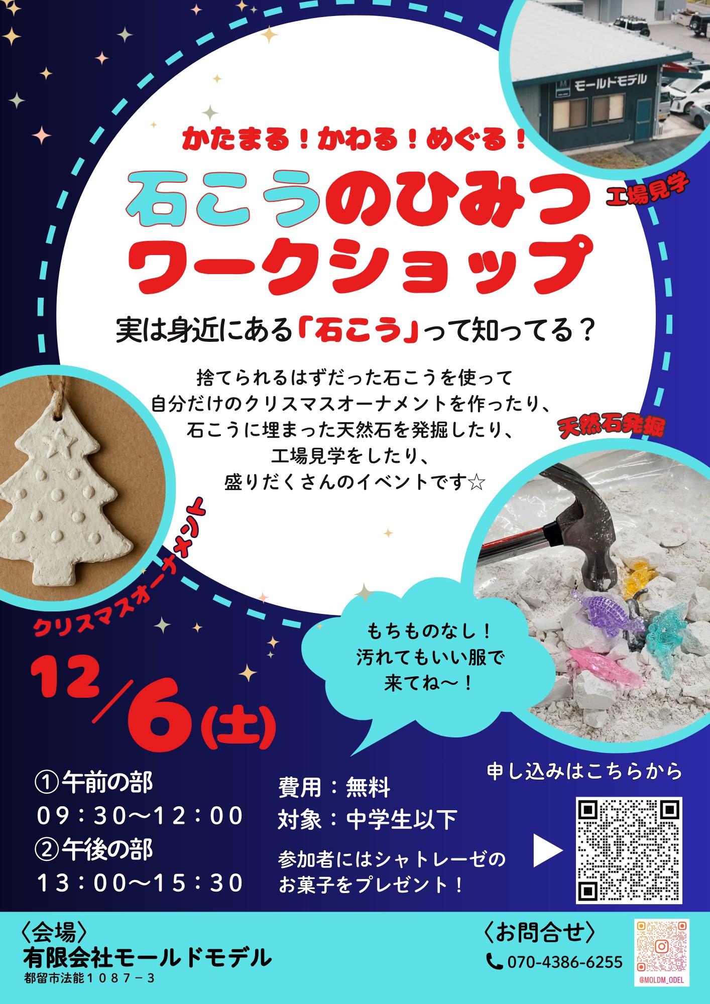 2025.11.06 未分類12/6(土)に「かたまる!かわる!めぐる!石こうのひみつワークショップ」を開催します。